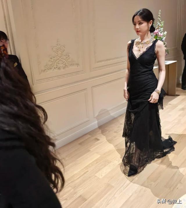 热巴每次出席活动,礼服都是品牌为她量身定做,设计师肯定根据她的身型和喜好改礼服,完全贴合身型,就比如这一次的深V黑色蕾丝礼服,展现出她曼妙的身姿。
